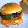 • 16 – Hamburguesa premium de vaca con queso de cabra y mayonesa de bacon y pepinillo