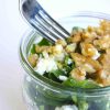 Ensalada de espinacas con nueces, queso de cabra y salsa de miel y naranja