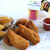 • Fingers de pollo, patatas, zumo y Petit suisse